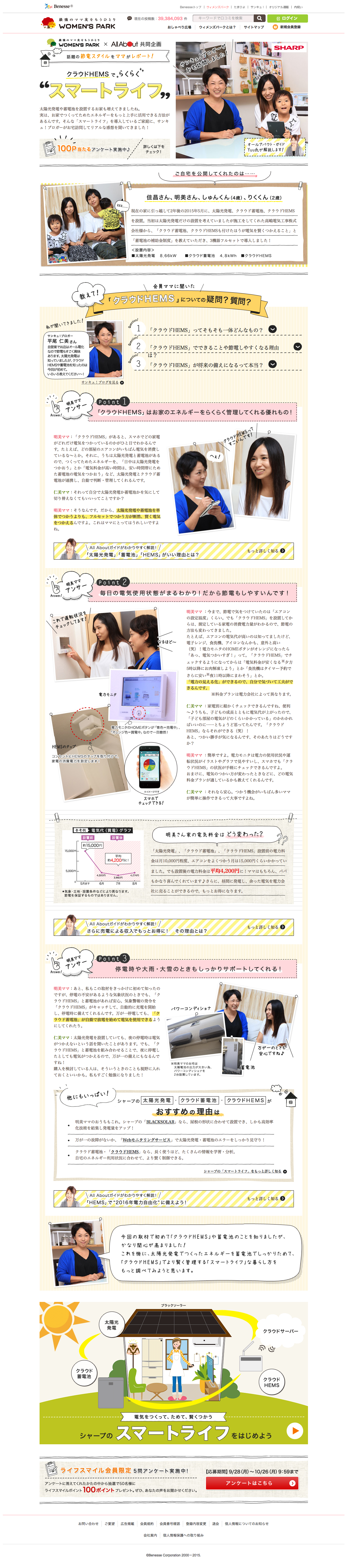 国内最大級の総合情報サイト「ALL About」や女性限定コミュニティサイト「ウィメンズパーク」にて、弊社にて太陽光発電システムや蓄電池・クラウドHEMSを設置頂いたお客様が掲載されました。